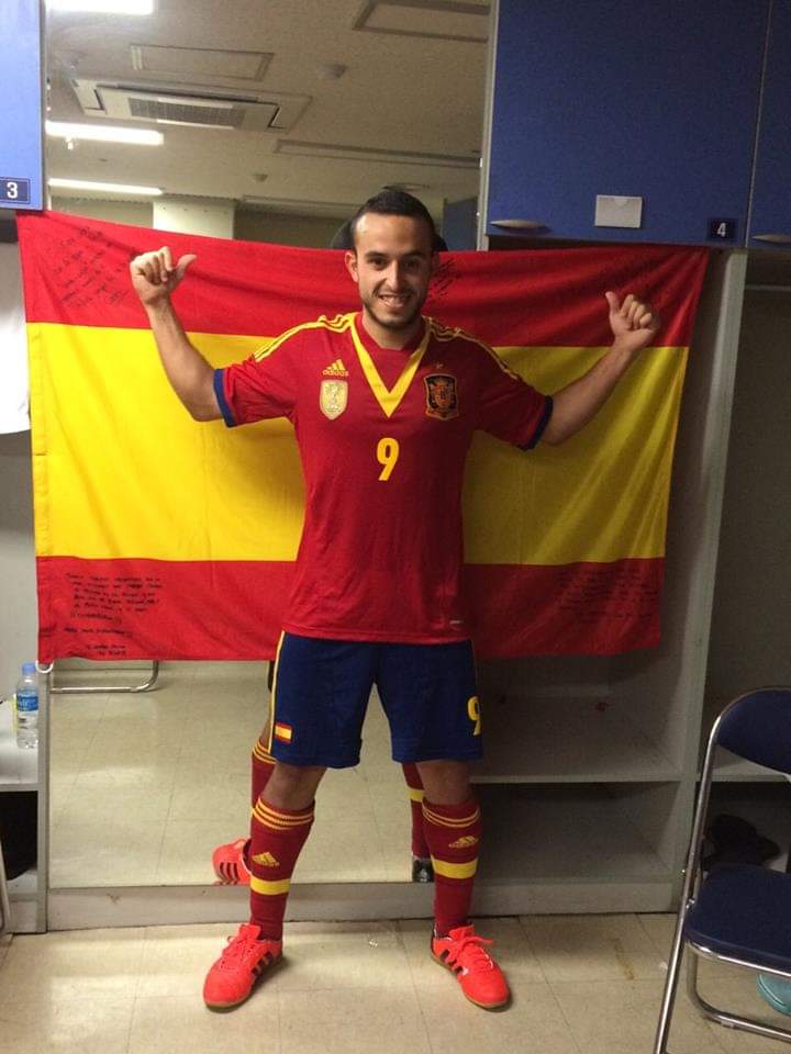 Una vez ya estaba en el equipo de Murcia en mi primer partido, jugué a un buen nivel, metí dos goles y en la grada se encontraba el seleccionador español, y cogió interés en mi
